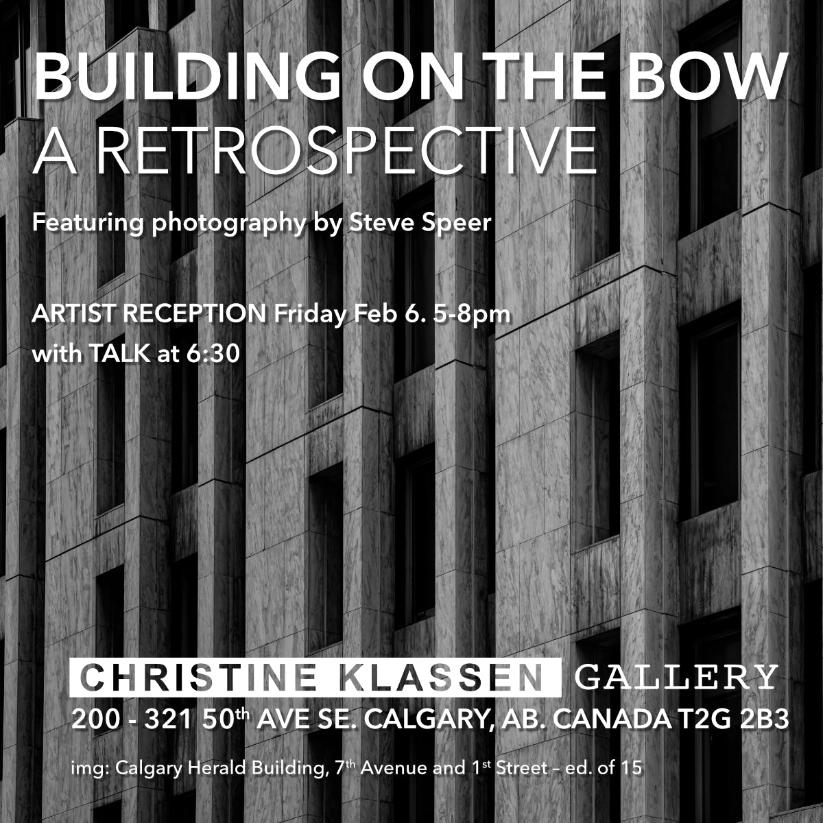 As part of the Exposure Photography Festival, Christine Klassen Gallery will be presenting a series of select photos from Steve Speer's acclaimed book project "Building on the Bow". The images will be presented as carbon prints on handmade Japanese Washi paper. Be sure to add this exhibition to your "must see" events during the festival.