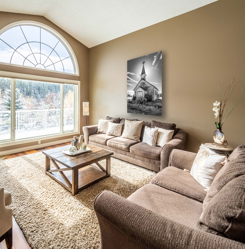 The Acrylic Float image is printed onto smooth photo paper and then face mounted onto museum quality acrylic. Di-bond is mounted to the back of the acrylic for rigidity and to protect the rear of the image. A 3/4" thick, wood float frame is recessed in approximately 2" from the edge of the image and a cleat hanging system is utilized along with felt pads to protect your wall.
