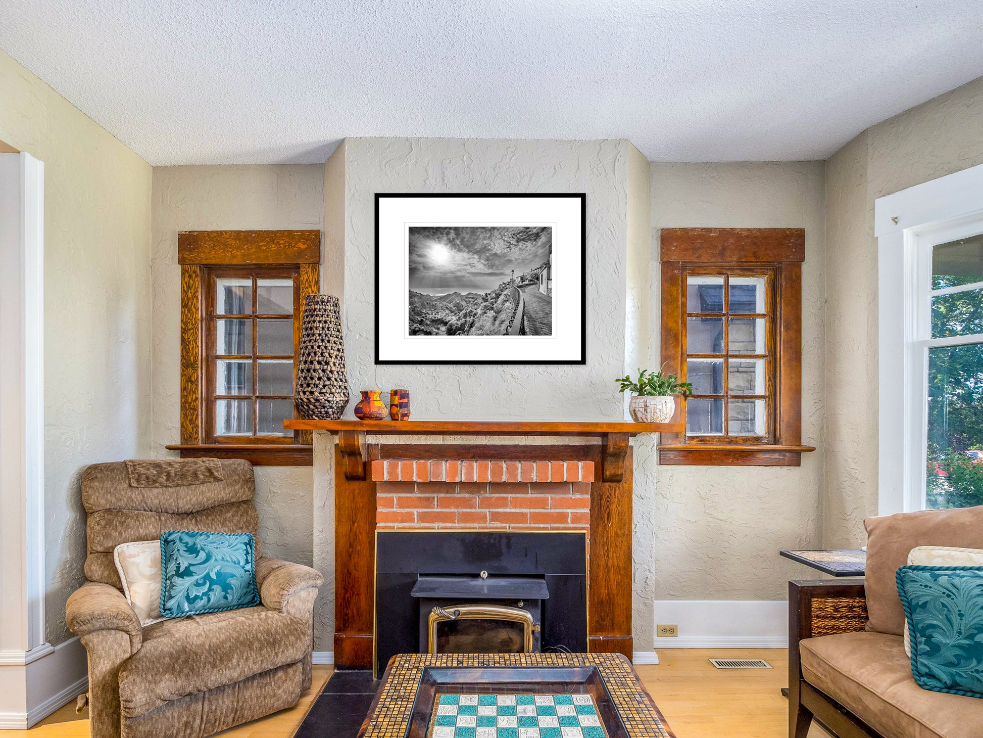 Beams of early morning sunlight penetrate the clouds with the Ionian Sea beyond. Savoca was the location for the Sicilian portion of the first GodFather movie.