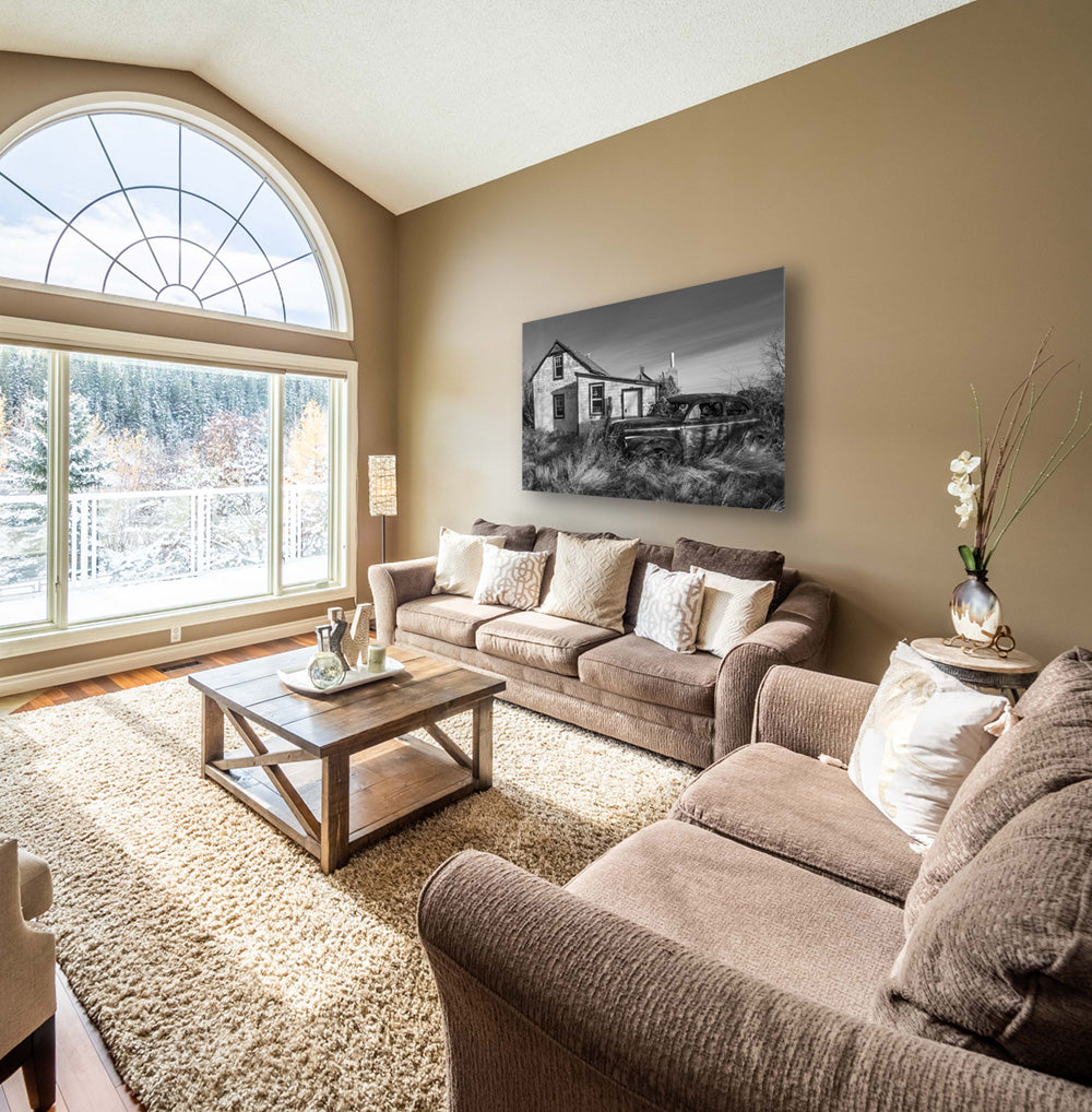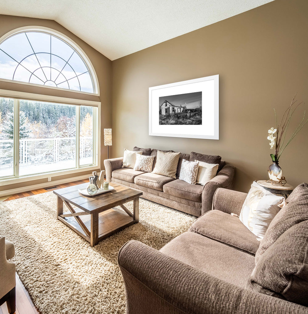 The Acrylic Float image is printed onto smooth photo paper and then face mounted onto museum quality acrylic. Di-bond is mounted to the back of the acrylic for rigidity and to protect the rear of the image. A 3/4" thick, wood float frame is recessed in approximately 2" from the edge of the image and a cleat hanging system is utilized along with felt pads to protect your wall.