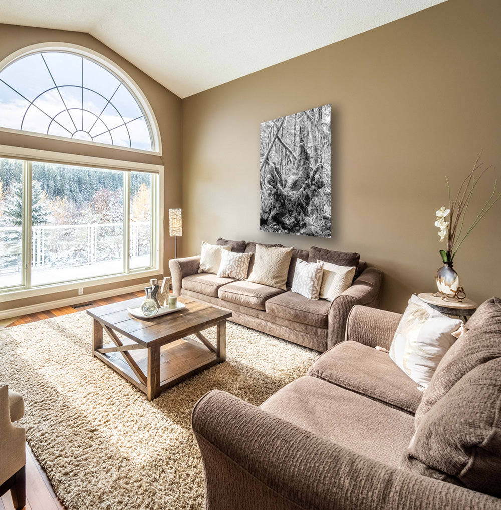 The Acrylic Float image is printed onto smooth photo paper and then face mounted onto museum quality acrylic. Di-bond is mounted to the back of the acrylic for rigidity and to protect the rear of the image. A 3/4" thick, wood float frame is recessed in approximately 2" from the edge of the image and a cleat hanging system is utilized along with felt pads to protect your wall.