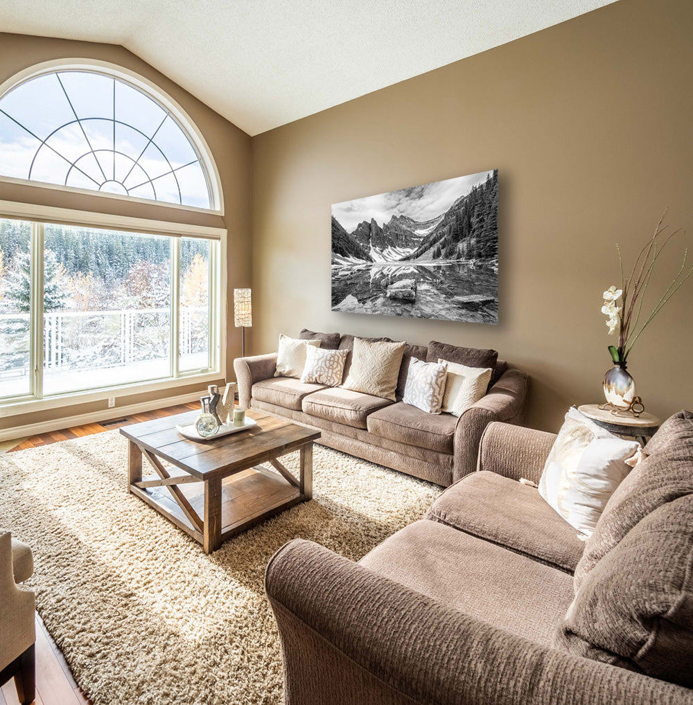 The Acrylic Float image is printed onto smooth photo paper and then face mounted onto museum quality acrylic. Di-bond is mounted to the back of the acrylic for rigidity and to protect the rear of the image. A 3/4" thick, wood float frame is recessed in approximately 2" from the edge of the image and a cleat hanging system is utilized along with felt pads to protect your wall.
