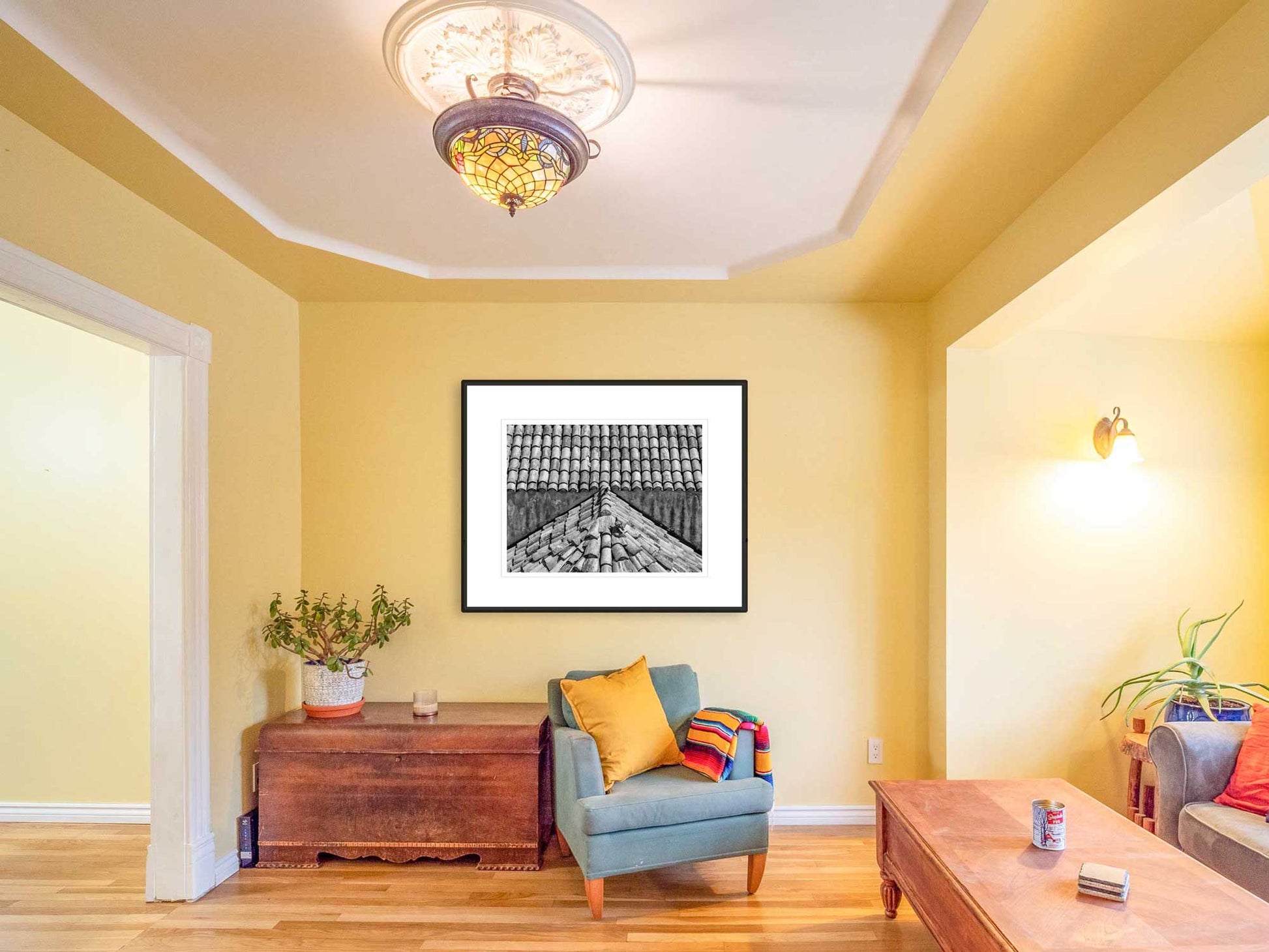 Pigeons are the main focus of this perfectly symmetrical roofline taken from the upper level of the perimeter wall around Dubrovnik's old town.