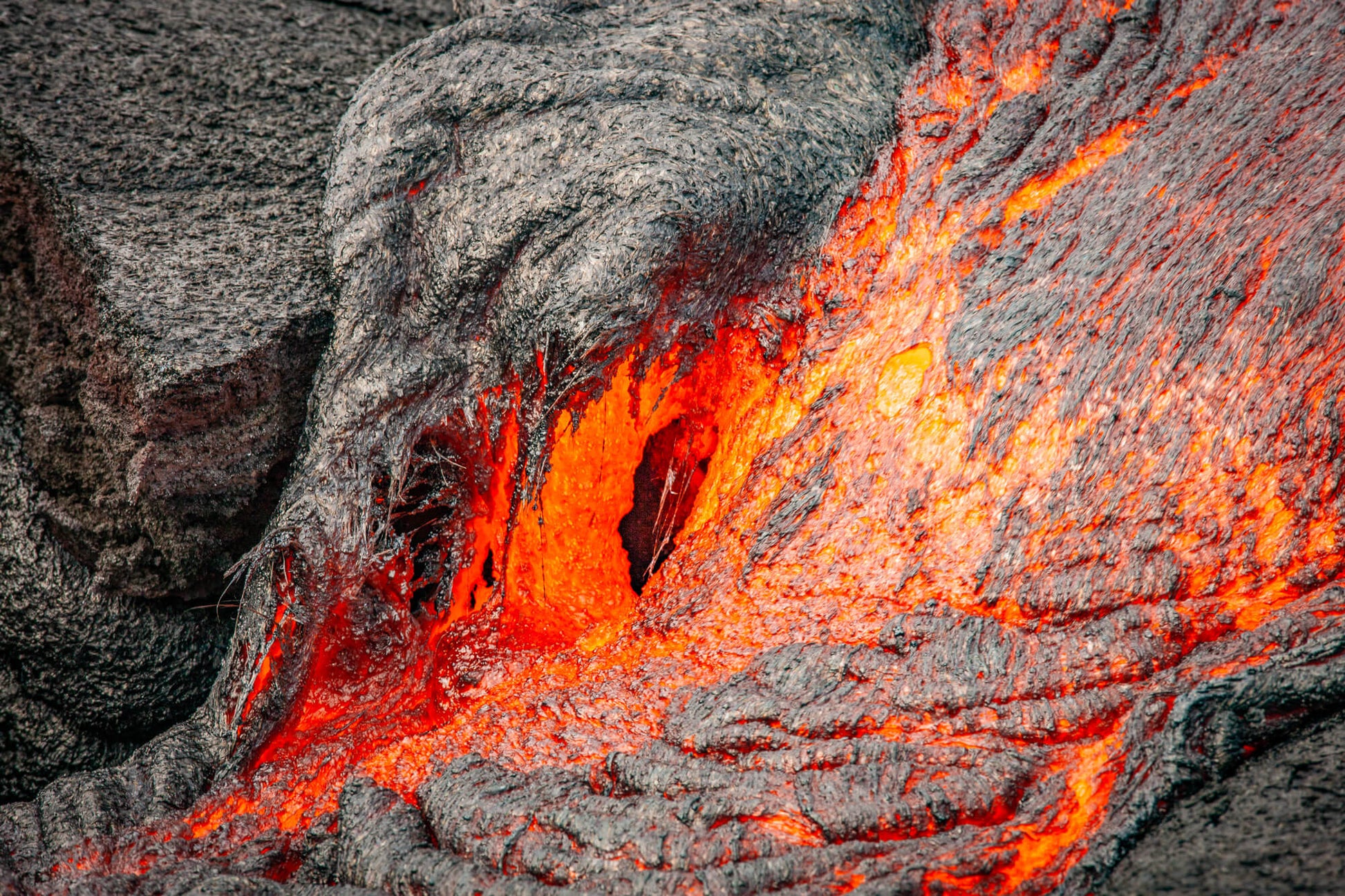 As the lava flows, it forms a series of smooth, undulating, folded ropes. The slow movement allows the lava to cool and form a solid crust on the outer edges.